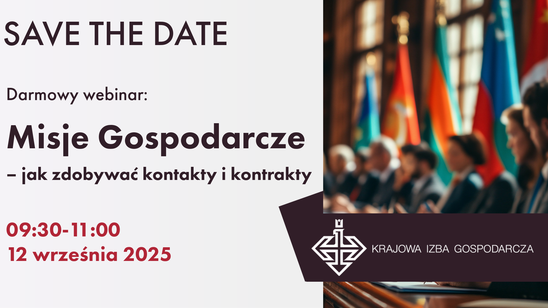 Misje gospodarcze to nie tylko podróże biznesowe. To przede wszystkim możliwość poznania specyfiki nowych rynków, rozmów z przedstawicielami instytucji gospodarczych i samorządowych, a także okazja do nawiązania bezpośrednich kontaktów z przedsiębiorcami, którzy mogą stać się partnerami w przyszłych przedsięwzięciach. Dzięki uczestnictwu w webinarze przedsiębiorcy dowiedzą się, jak strategicznie korzystać z tych możliwości oraz jak współpraca z Krajową Izbą Gospodarczą może wspierać rozwój ich firm.