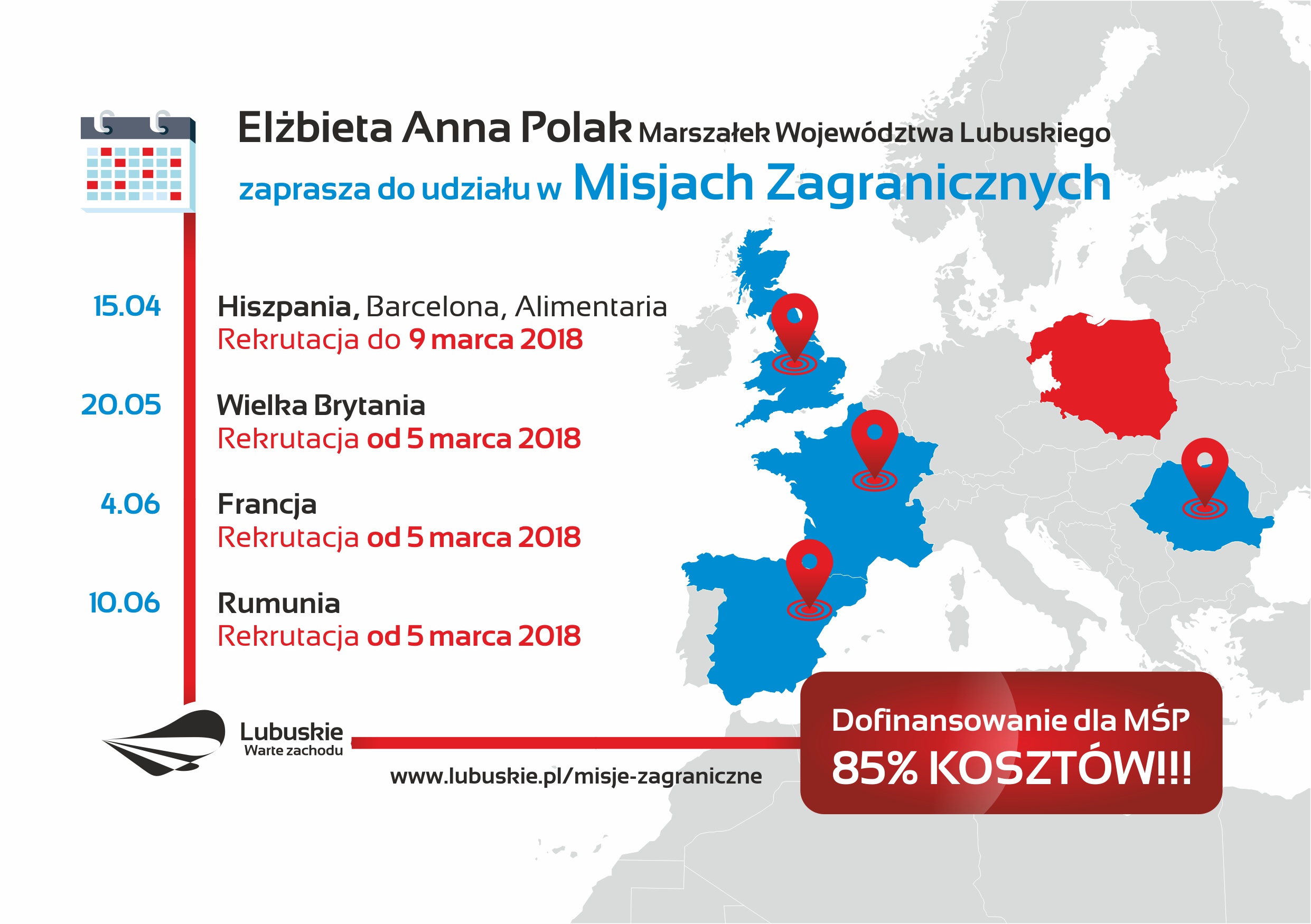 Misje organizowane są w ramach projektu ”Promocja gospodarcza województwa lubuskiego poprzez organizację i udział w zagranicznych targach i misjach gospodarczych” współfinansowanego ze środków Regionalnego Programu Operacyjnego – Lubuskie 2020, w okresach: