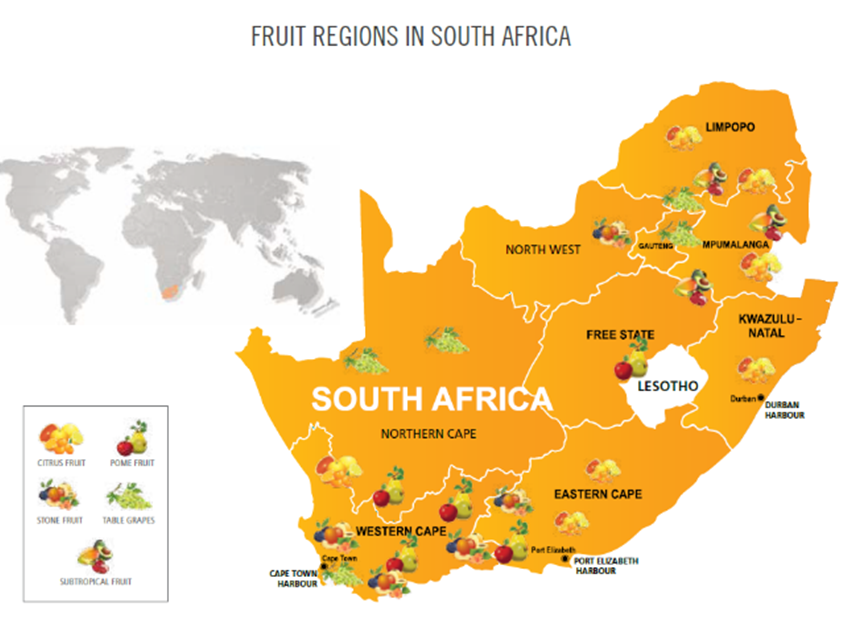 Głównymi importerami owoców cytrusowych z Południowej Afryki jest Holandia, Wielka Brytania, Rosja, Zjednoczone Emiraty Arabskie, Arabia Saudyjska i Chiny. Specjalność eksportowa RPA to też warzywa (m.in. bataty, dynia piżmowa, orzech szary). Oprócz cytrusów, eksport obejmuje m.in. owoce pestkowe, winogrona stołowe, owoce subtropikalne (awokado, liczi, mango, ananas, papaja) i owoce egzotyczne (melony, figi, granaty i inne) eksportowane do ponad 100 krajów. Południowoafrykańskie awokado trafia głównie do Europy.