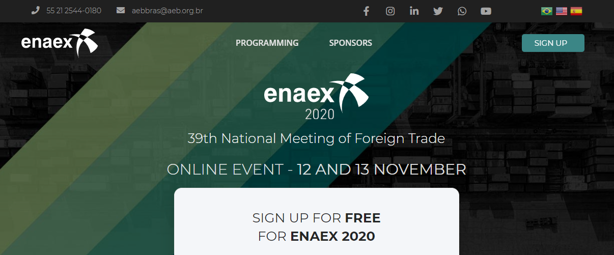 W imieniu działu promocji handlu Ambasady Brazylii pragnę przekazać Państwu zaproszenie na ENAEX – Forum Handlu Międzynarodowego, które odbędzie sie w dniach 12 – 13 listopada br. w trybie online, organizowane przez Brazylijskie Stowarzyszenie Handlu Zagranicznego (AEB).