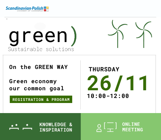 W imieniu Skandynawsko-Polskiej Izby Gospodarczej (SPCC) zapraszamy Państwa do udziału w wirtualnym spotkaniu biznesowym „Zielona gospodarka – nasz wspólny cel. Doświadczenia skandynawskie w polskiej rzeczywistości”. Wśród panelistów znajdą się między innymi ambasadorowie krajów skandynawskich.