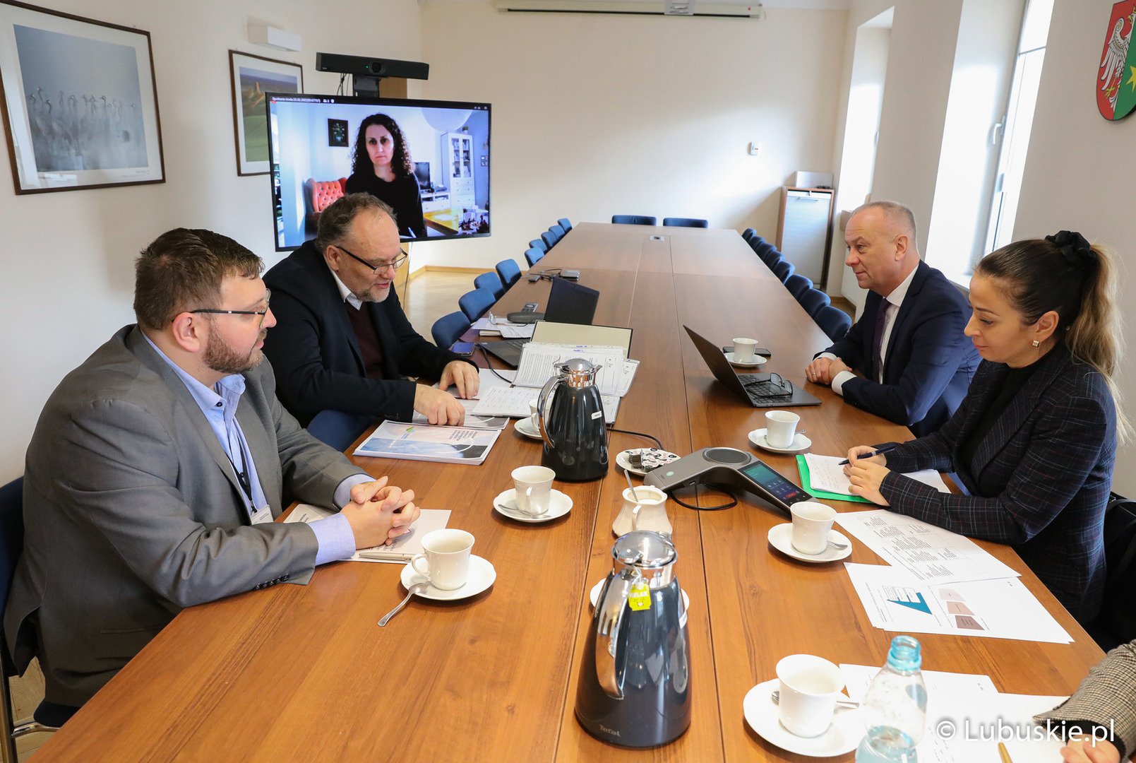 Spotkanie dotyczyło kierunków realizacji Programu Rozwoju Innowacji woj. lubuskiego w perspektywie do roku 2030. W rozmowach udział wzięli: członek zarządu woj. lubuskiego Marcin Jabłoński, ekspert zarządzania innowacjami dr Jerzy Tutaj, a także dyrektor Departamentu Zarządzania Regionalnym Programem Operacyjnym Sylwia Pedzińska, zastępca dyrektora Departamentu Programów Regionalnych Agata Wdowiak oraz dyrektor Departamentu Rozwoju i Innowacji Jarosław Flakowski.