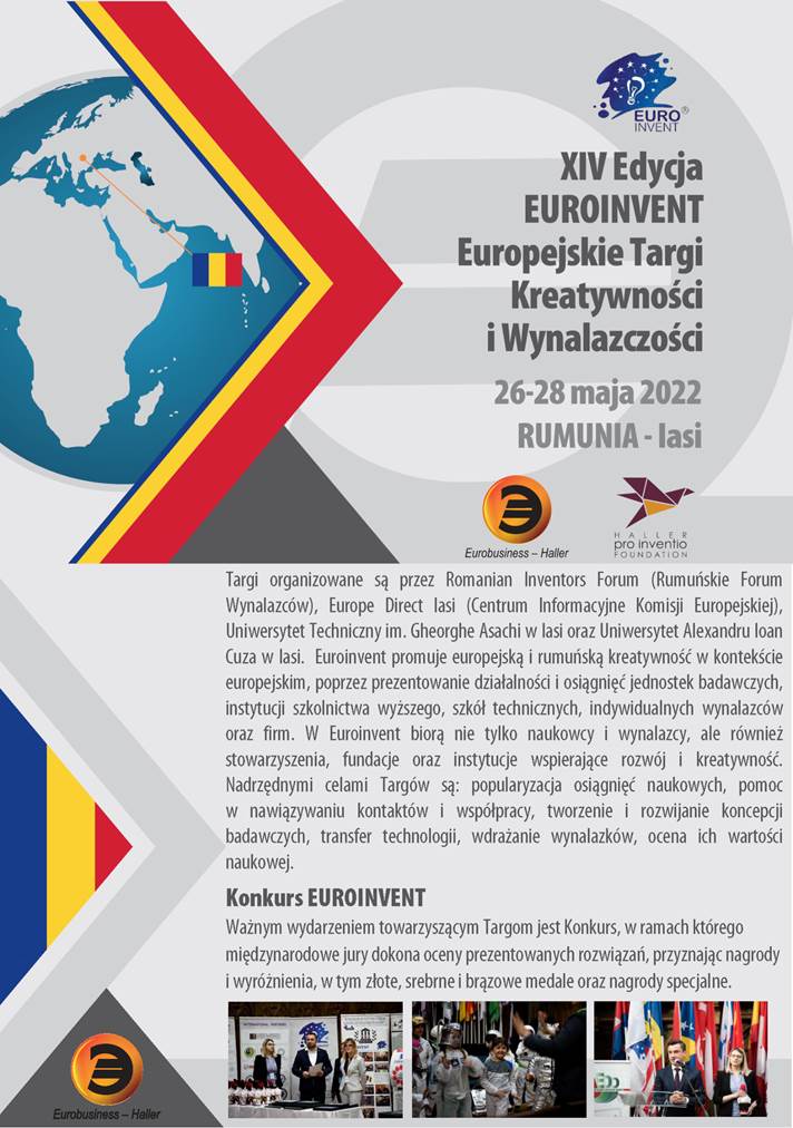 XIV Europejskie Targi Kreatywności i Wynalazczości EUROINVENT 2022 (Iasi, Rumunia, 26-28 maja 2022)
