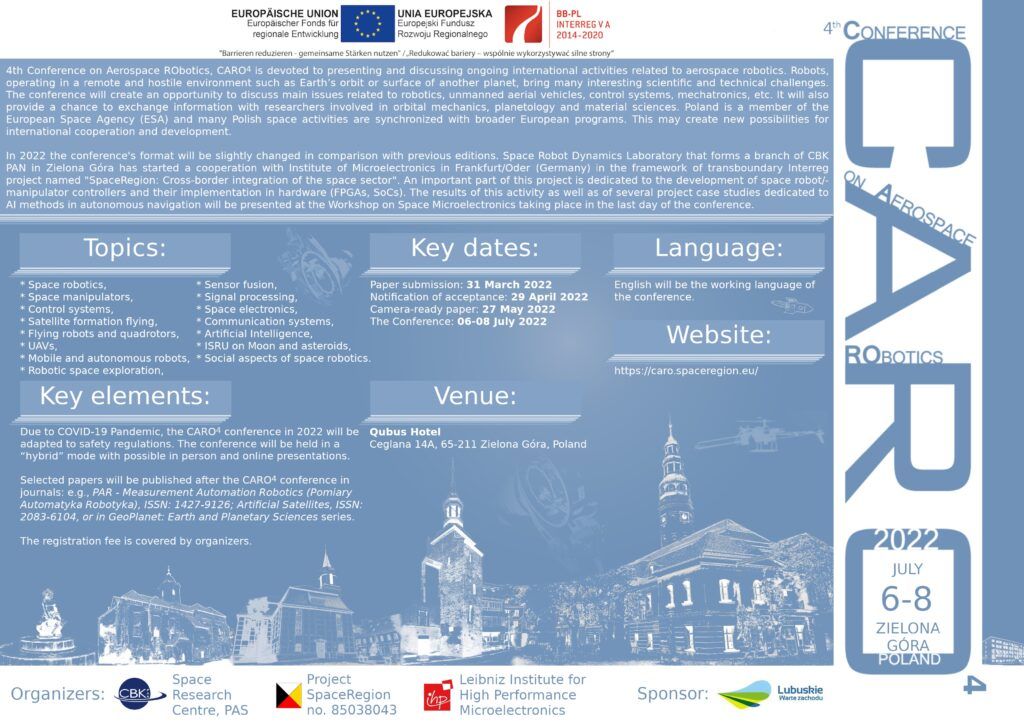 – 4 edycja międzynarodowej konferencji naukowej CARO (Conference on Aerospace Robotics)