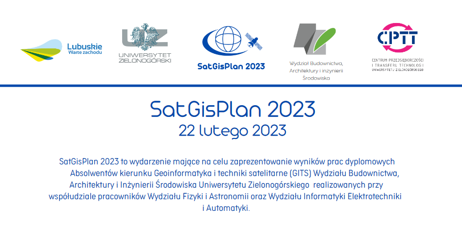 Urząd Marszałkowski Województwa Lubuskiego wraz z Uniwersytetem Zielonogórskim organizuje konferencję pn. SatGisPlan 2023, która odbędzie się 22 lutego 2023 roku w budynku Parku Naukowo-Technologicznego UZ w Nowym Kisielinie, w Centrum Budownictwa Zrównoważonego i Energii.