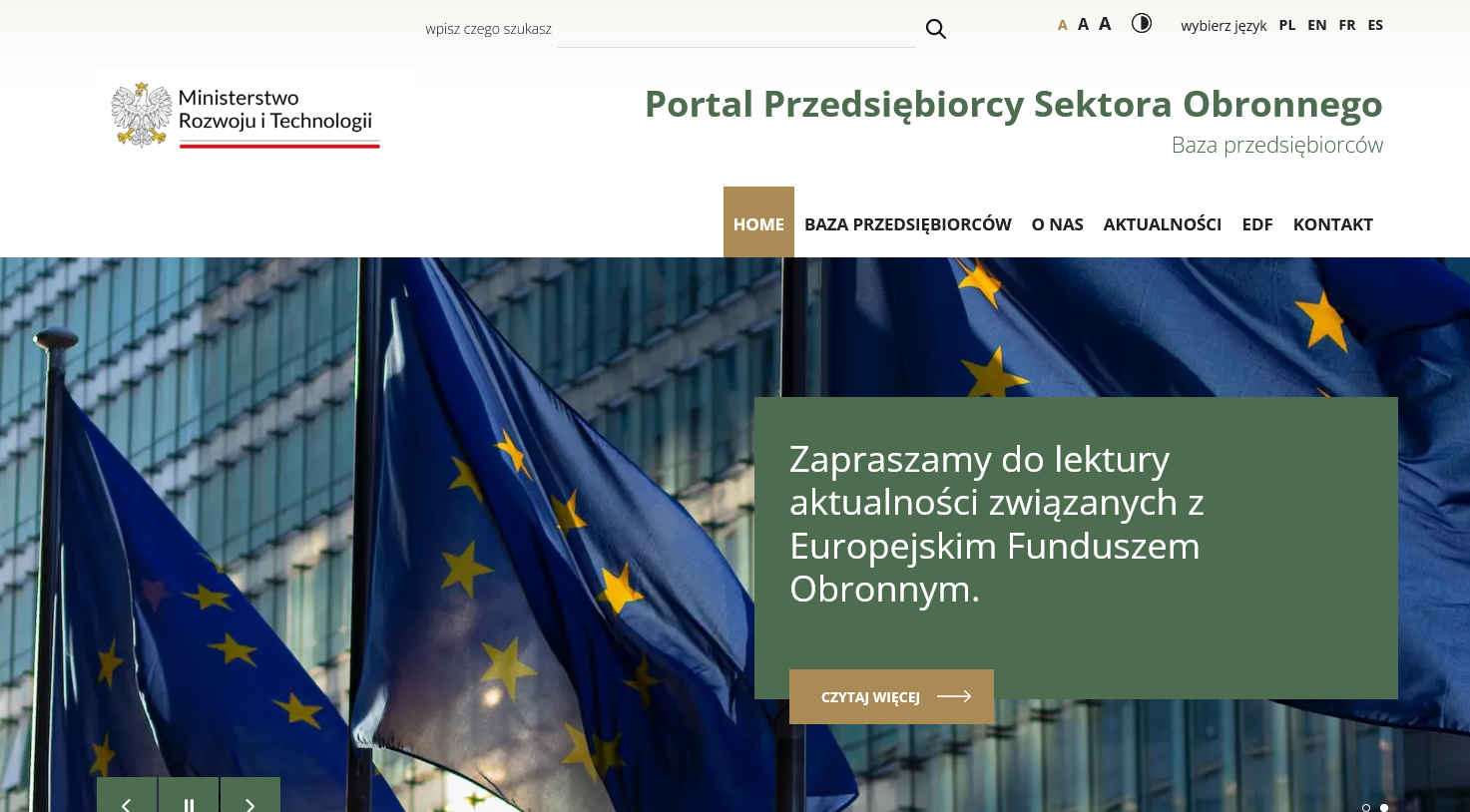 Ministerstwo Rozwoju i Technologii uruchomiło nowy portal (http://polishdefenceindustry.gov.pl/) dla firm przemysłu obronnego, na którym przedsiębiorcy z tego sektora mogą znaleźć praktyczne informacje dotyczące sektora obronnego np. webinaria, targi przemysłowe i inne ważne wydarzenia zarówno w kraju jak i na świecie. Ponadto każda firma z tej branży będzie mogła zgłosić swoją wizytówkę z danymi, co pomoże potencjalnym zagranicznym partnerom w nawiązaniu kontaktów. Polscy przedsiębiorcy będą mogli też znaleźć informacje np. o Europejskim Funduszu Obrony (EDF) i innych instrumentach unijnych dedykowanych rozwojowi sektora obronnego, czy mechanizmach rozwoju innowacji obronnych w UE. Strona jest dostępna w języku polskim, angielskim i francuskim. W najbliższym czasie zostaną także przygotowane kolejne wersje językowe: ukraińska, hiszpańska oraz arabska. Umożliwi to współpracę międzynarodową polskim przedsiębiorstwom i ułatwi kontakt firmom z zagranicy, które chciałaby nawiązać współpracę z polskimi partnerami.