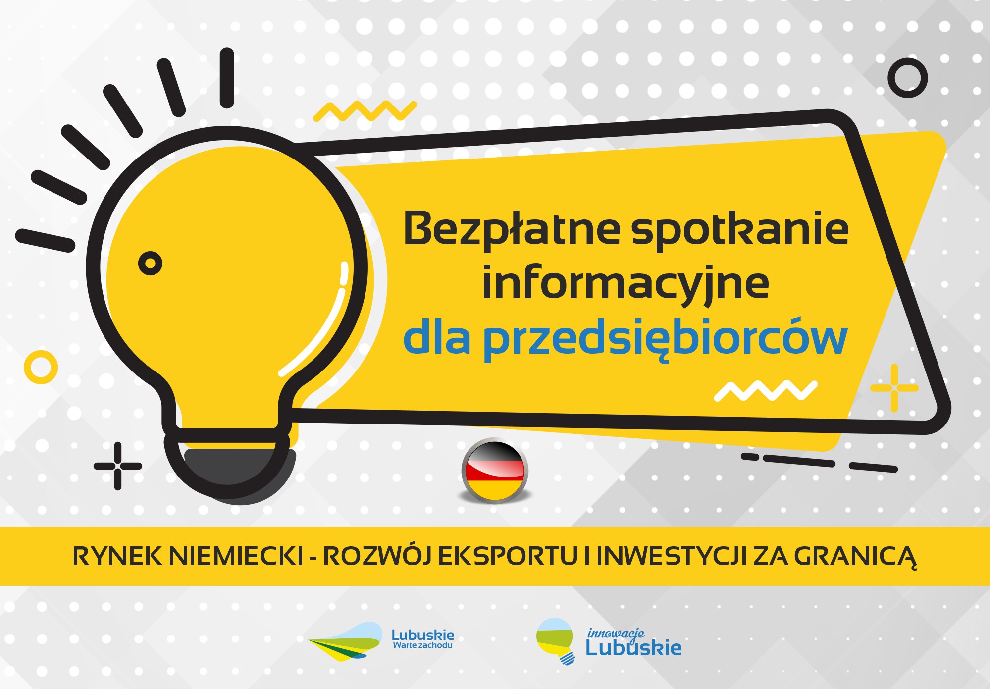 Departament Rozwoju i Innowacji – Wydział Wsparcia Przedsiębiorczości COIE w Urzędzie Marszałkowskim Województwa Lubuskiego organizuje spotkanie informacyjne w ramach wsparcia eksportu i inwestycji za granicą dla przedsiębiorstw z województwa lubuskiego pn. Budowanie i Rozwój strategii Eksportowej. Spotkania przeprowadzone będzie formie stacjonarnej pn. Rynek niemiecki jak założyć firmę w Niemczech i jak utrzymać się na rynku niemieckim. Tematem sesji będą zagadnienia związane z możliwościami eksportu i handlu z Niemcami.