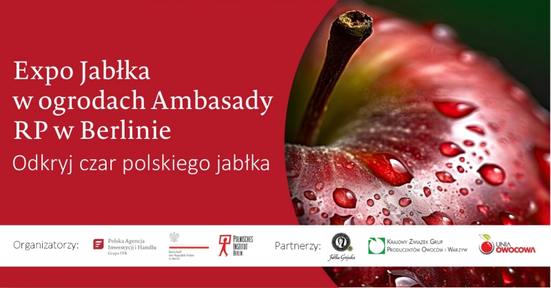 Polska Agencja Inwestycji i Handlu wraz z Ambasadą RP w Berlinie zaprasza eksporterów jabłek oraz produktów powstałych na bazie tego owocu zainteresowanych rynkiem niemieckim do udziału w „Expo Jabłka” w ogrodach Ambasady. Wydarzenie odbędzie się w dniach 15-16 września w Berlinie.