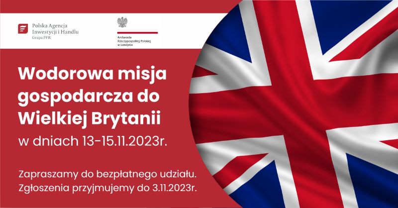 Polska Agencja Inwestycji i Handlu zaprasza polskie przedsiębiorstwa działające w sektorze technologii wodorowych do udziału w misji gospodarczej do Wielkiej Brytanii w dniach 13-15 listopada 2023 r.