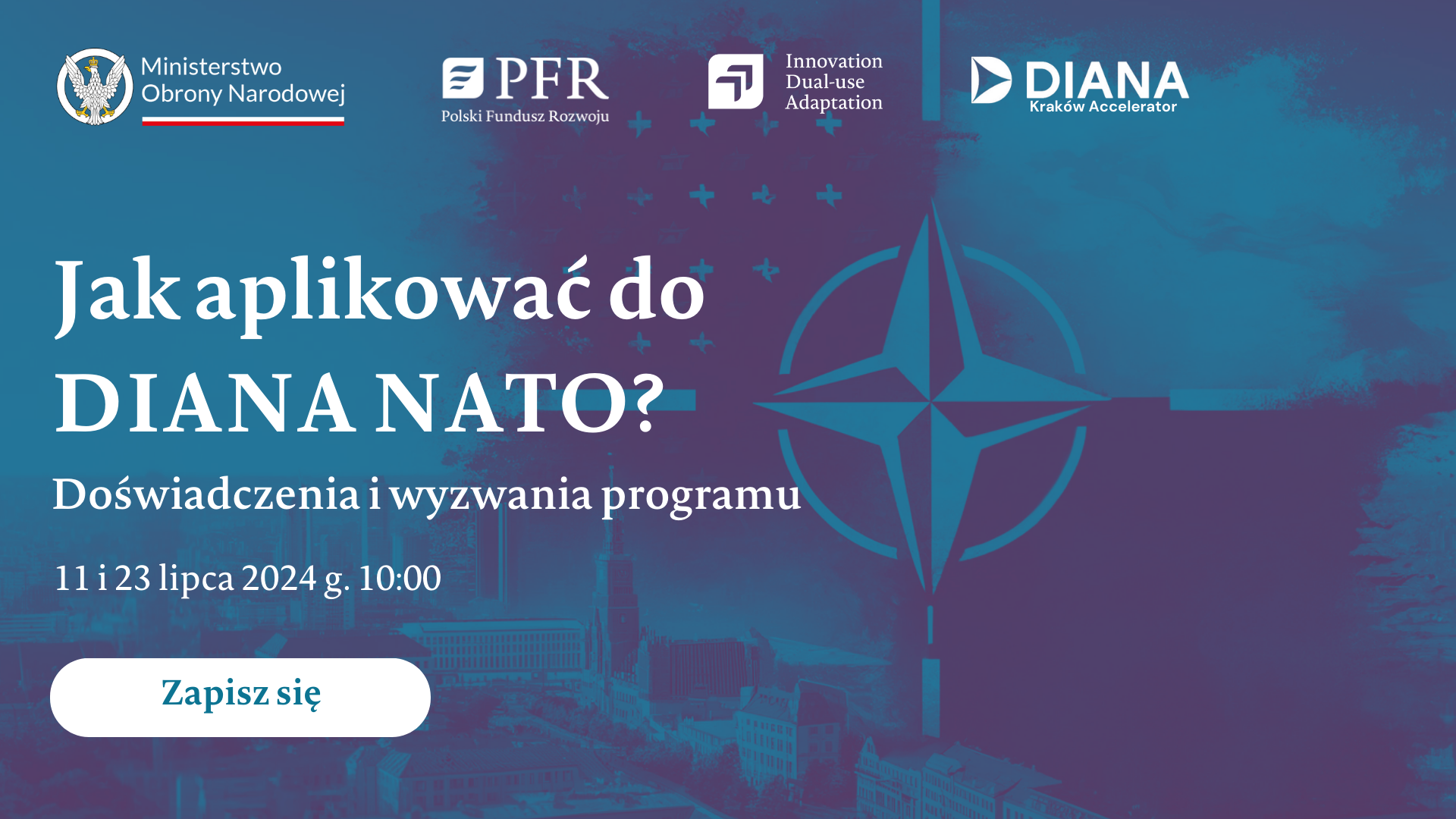 - 23 lipca godz. 10:00: „Wyzwania DIANA 2024 – zadawaj pytania bezpośrednio Zespołowi DIANA NATO” – spotkanie z przedstawicielami akceleratora DIANA.