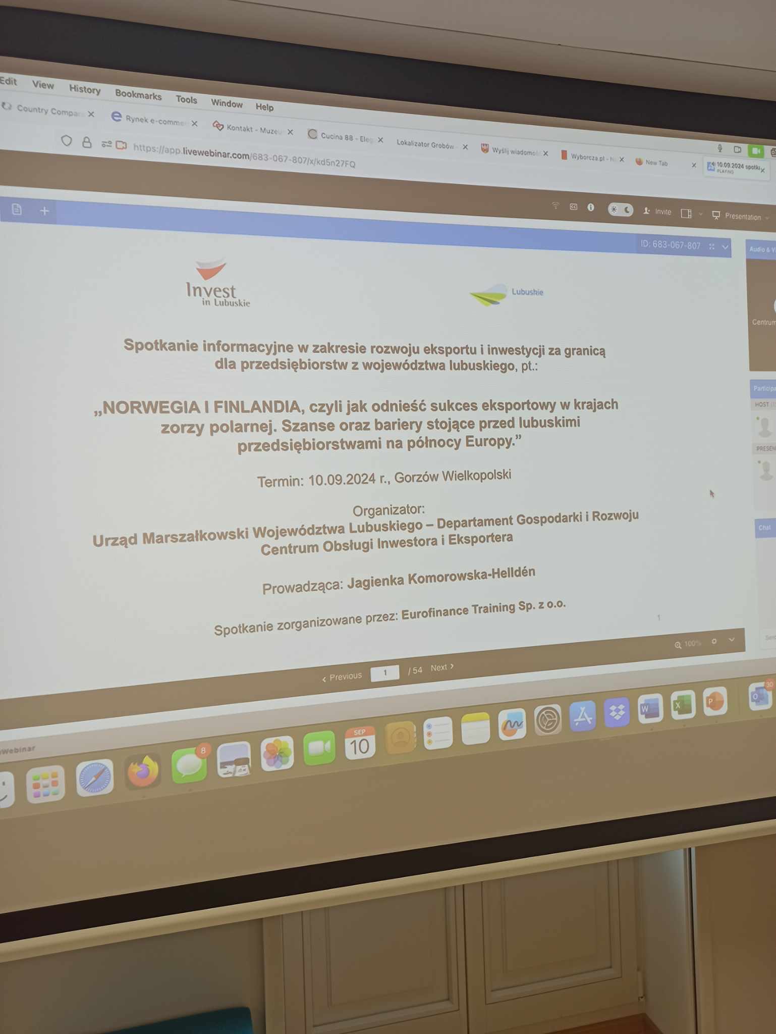 10 września 2024 r. w Gorzowie Wlkp. odbyło się trzecie spotkanie z cyklu szkoleń dla przedsiębiorców zainteresowanych poszerzeniem rynków zbytu i eksportem towarów i usług pn. „NORWEGIA I FINLANDIA, czyli jak odnieść sukces eksportowy w krajach zorzy polarnej. Szanse oraz bariery stojące przed lubuskimi przedsiębiorstwami na północy Europy.”