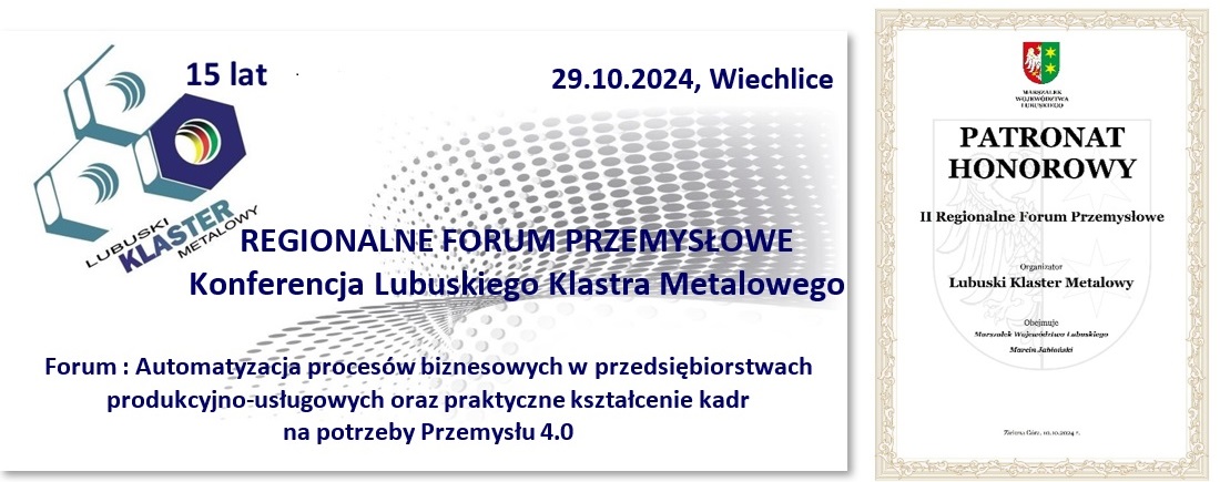 Lubuski Klaster Metalowy organizuje II Regionalne Forum Przemysłowe, którego główne cele koncentrują się wokół rozwijania przedsiębiorczości i dalszego wzrostu konkurencyjności gospodarki regionu, promocji innowacyjnych rozwiązań przemysłowych, wsparcia firm w dążeniu do cyfrowej i zielonej transformacji oraz zapewnienia dalszego rozwoju relacji między nauką, podmiotami biznesu, administracji publicznej i społeczeństwa.